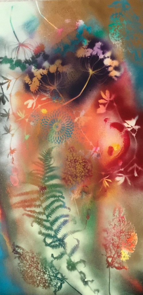 New painting course using acrylic inks and spray paints using leaves and plants to make your image !